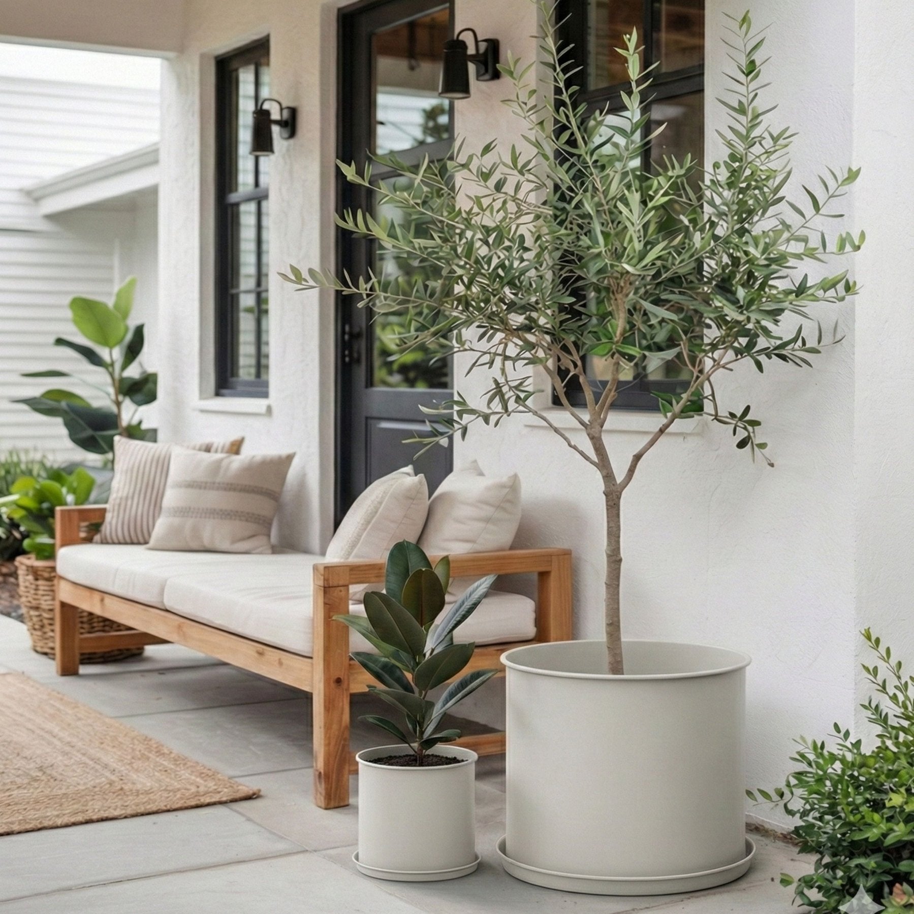 Das skandinavische, zeitlose Design in Greige, Anthrazit oder Moosgrün macht die Töpfe zu stilvollen Elementen auf Balkon, Terrasse oder im Innenbereich. Dank galvanisiertem Metall sind sie wetterfest, langlebig, stabil und nachhaltig – eine moderne Alternative zu Kunststoff-Pflanzkübeln.