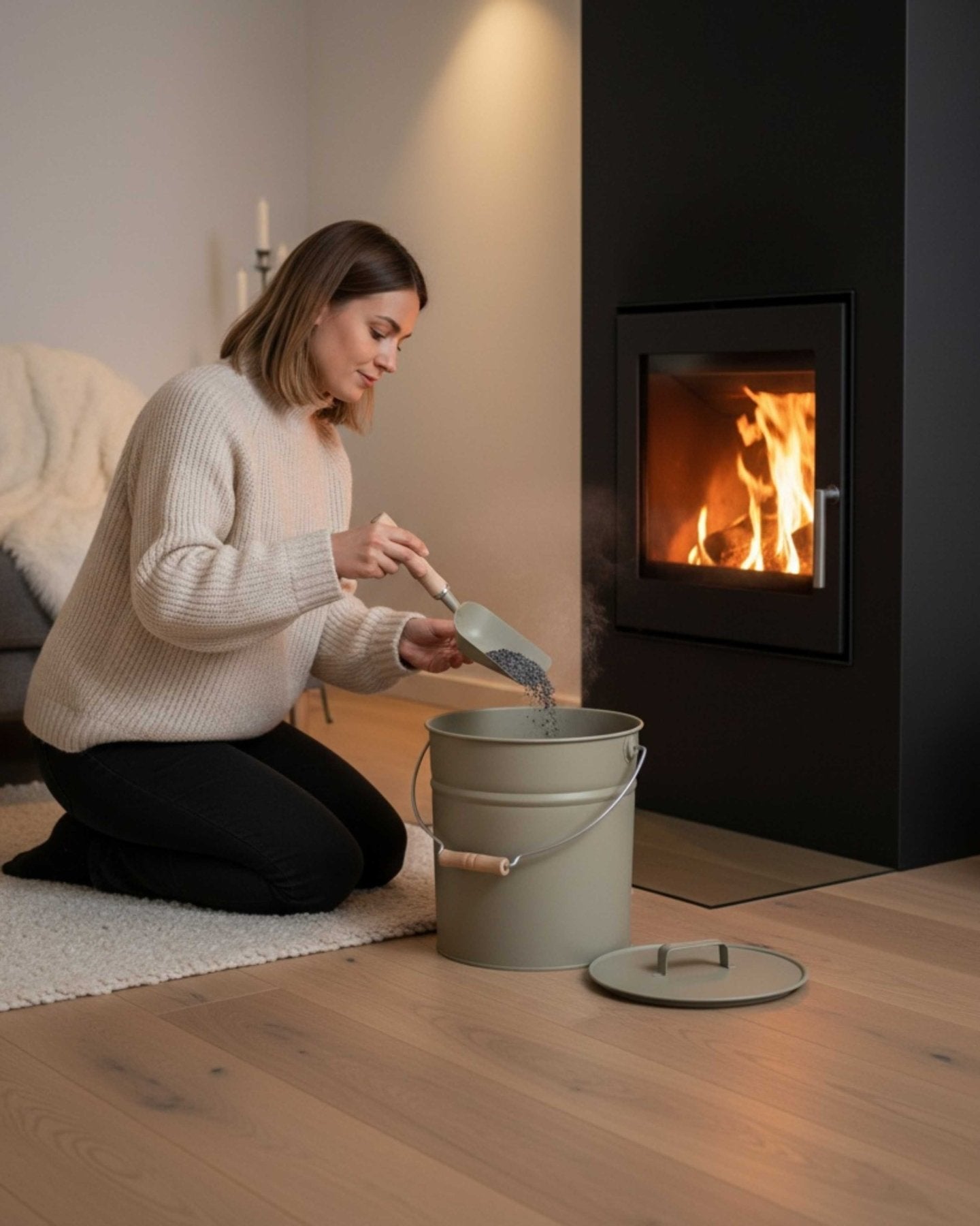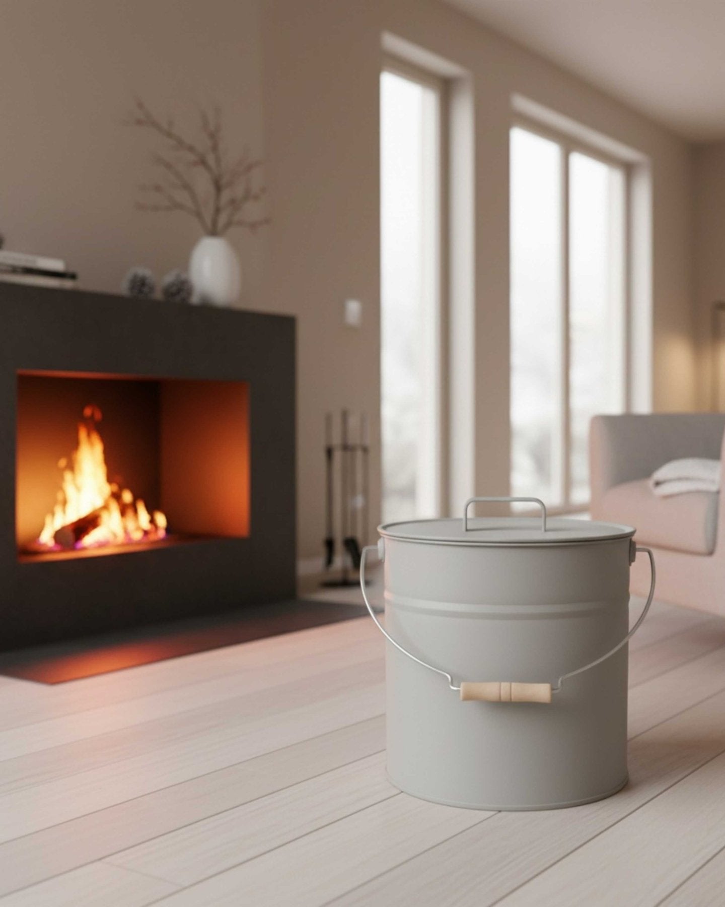 • Ash bucket with lid – perfect for fireplace ash, coal, or grill residues