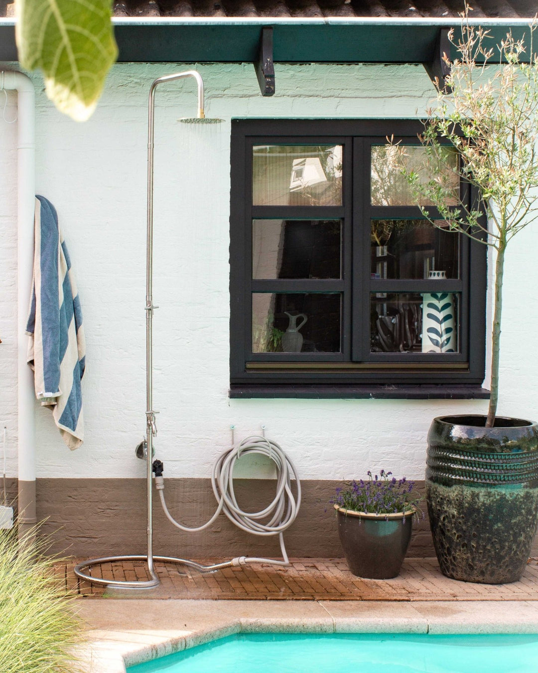 • Design meets function: High-quality outdoor shower made of brushed stainless steel – weatherproof and elegantly shaped