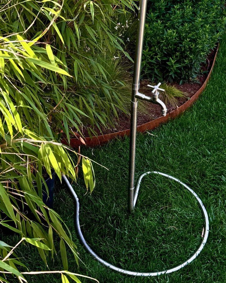 The LIVLIG design garden shower brings minimalist luxury to your outdoor space. Made from high-quality brushed stainless steel, it combines elegant design with durable functionality – ideal as a stylish outdoor shower for garden or pool.