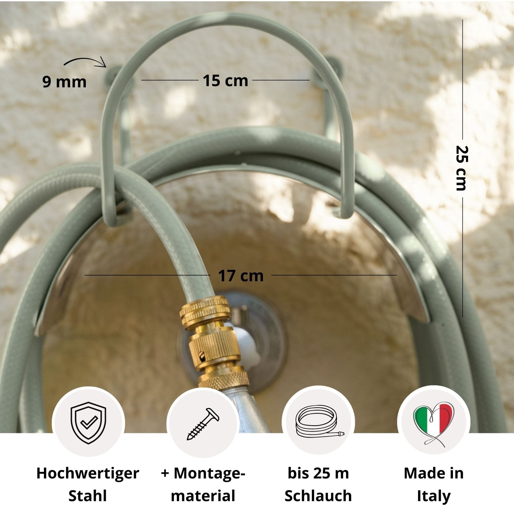 Made from high-quality, weather-resistant steel, it provides neat and stylish storage for your garden hose. The minimalist design fits perfectly into modern gardens, terraces, or garages.