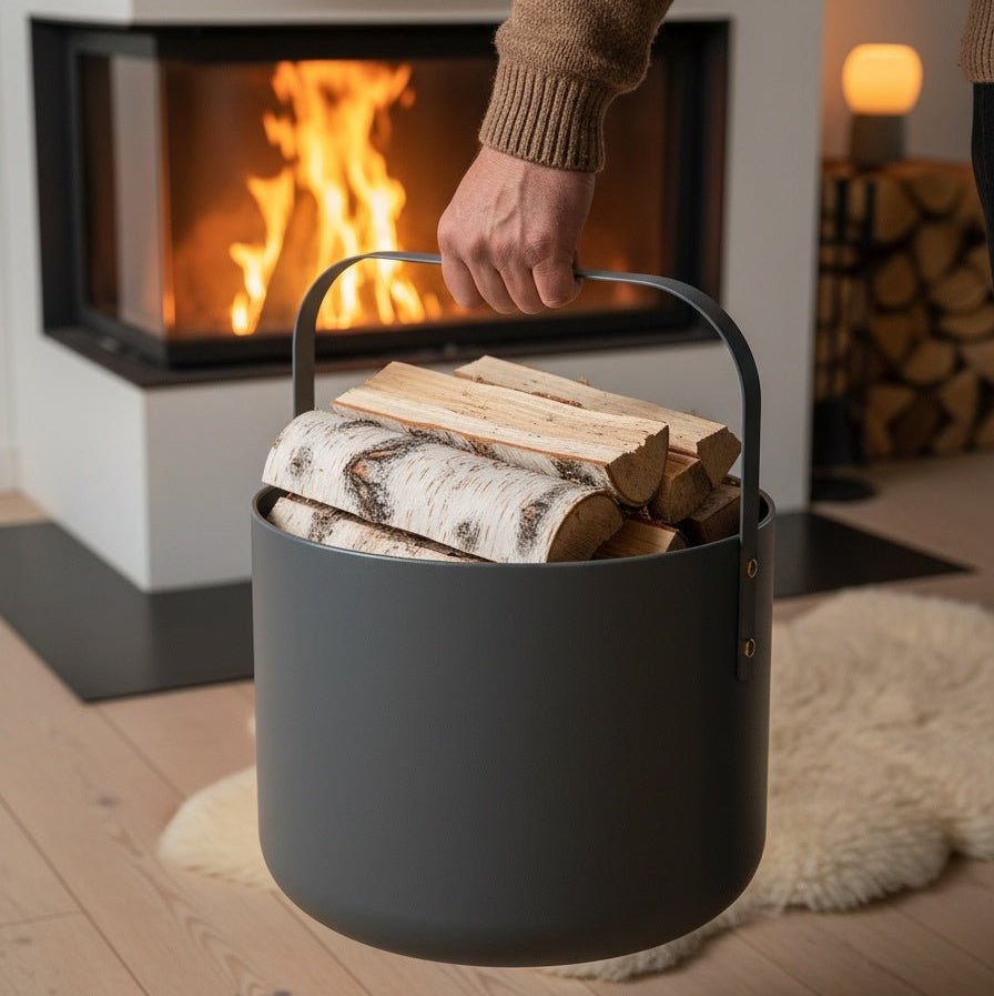 • Taille pratique (H 43,5 × Ø 36 cm) – Forme compacte mais généreuse pour un rangement optimal du bois sans prendre beaucoup de place.