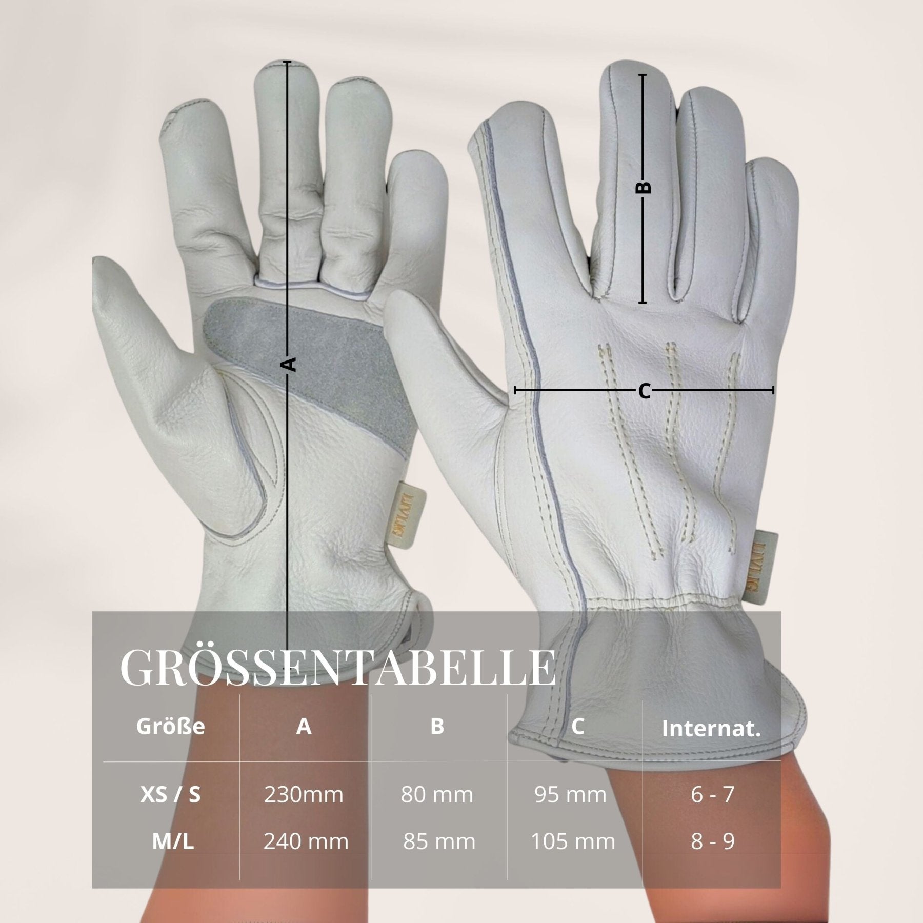 Scegliamo consapevolmente i guanti in pelle invece dei guanti di gomma, poiché offrono una combinazione superiore di durata e stile. I nostri guanti in pelle di alta qualità sono appositamente progettati per le esigenze del giardinaggio e garantiscono una protezione affidabile e comfort per ogni attività in giardino.